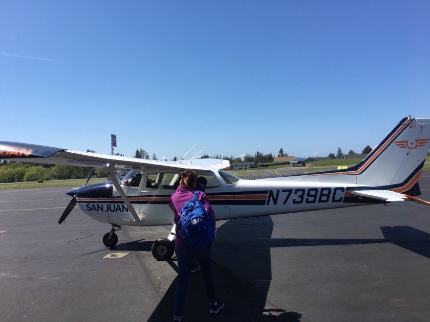 We have often watched small private planes fly into the tiny airport just over the hill beyond our harbor. Now we were going to get a chance to experience that first hand. Larry arranged for a tiny 4 person plane to fly us up that afternoon and saved the day.