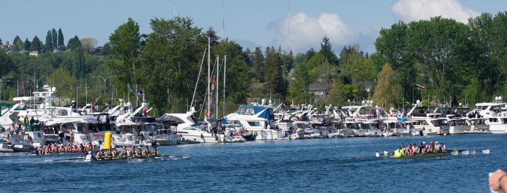 Miranda picked up her buddies from the UW dock minutes before they closed it for the rowing races. It was a clown car of a dingy because she ran out of time for two trips.