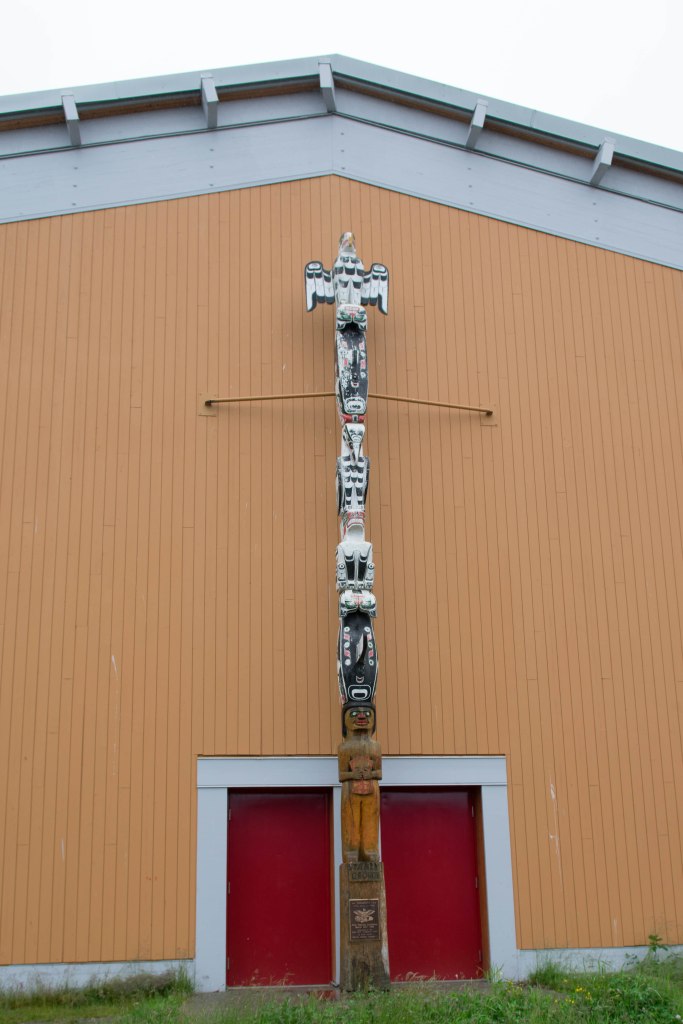 Bella Bella is a small village, but had an impressive looking school. This is the totem in front of it from the commemoration about 20 years ago.