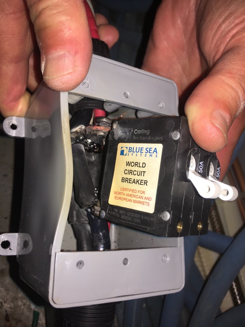 So, what to do? We are off to Petersburg today to see if we can buy or get shipped in a replacement circuit breaker. I did not have a spare for this breaker, nor do I have the connectors or crimping tool for this heavy gauge AC wiring. Lesson learned, both in terms of spare parts and tools.