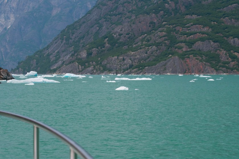 Turning the corner from there, we saw another magnificent vista – the South glacier is much larger than the north and obviously goes through much more calving, reflected by the number of icebergs at the head of the inlet.