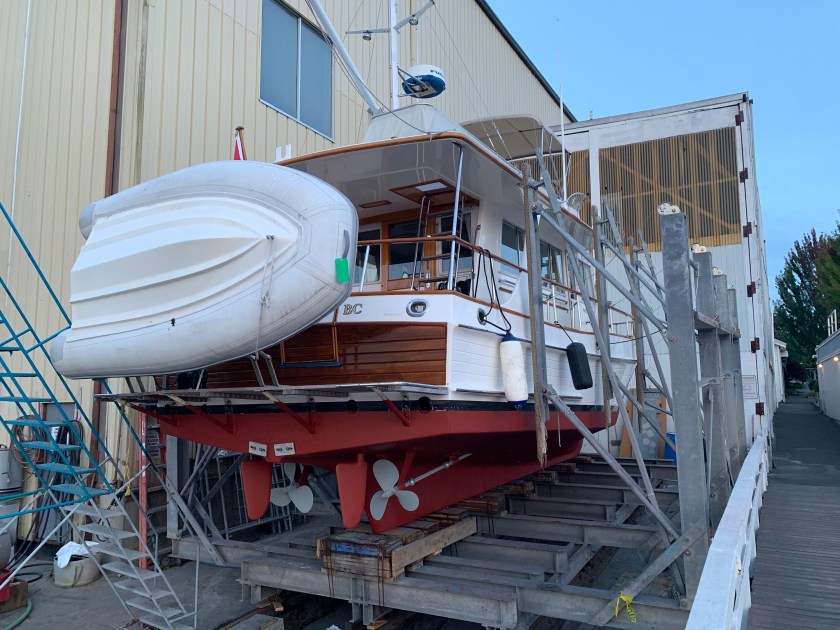 - Haul the boat out of the water and look at our propeller and bottom paint and do any service required. We didn’t hit any ice or logs of significance so we believe the propeller is in good shape but want to be sure.