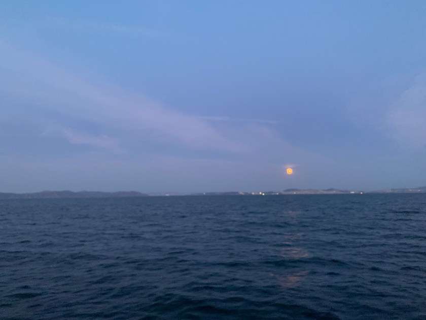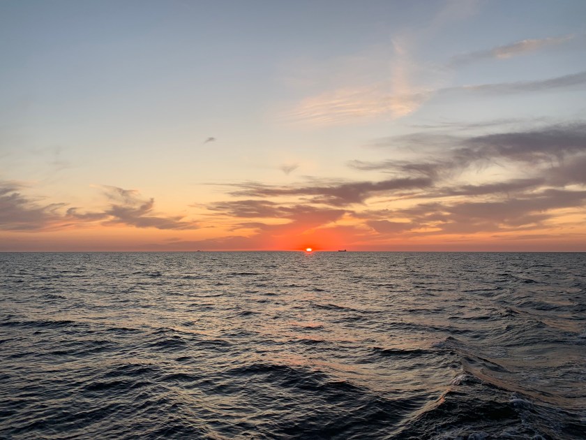 I don’t have any pictures of this but there are numerous oil wells off the coast now. It is a weird site to see these huge hulking brightly lit towers appear on the horizon. We gave them a wide berth.