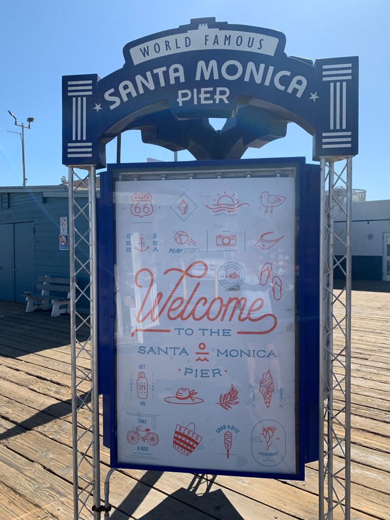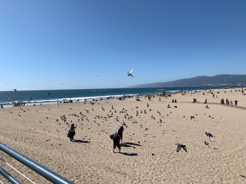 That afternoon we hopped on our bikes and rode the path to Venice Beach and beyond to the Santa Monica pier. Venice was both seedier than we thought it would be, and much less active, despite it being in the 70s and sunny. It was a weekday though, and I expect even Southern Californians do have to work.