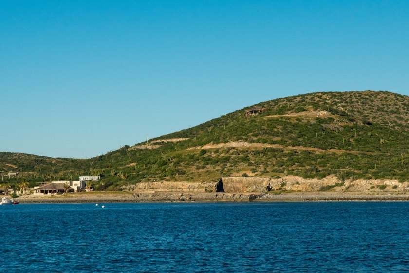 On the way, we watched the change in the coastline from desert browns and sands to lush greens. Clearly there is more rain on this side of Baja. Most of the coastline was empty, but at times villages were apparent. We were several miles offshore so it was a bit challenging to get good photos and things were more visible through our binoculars.