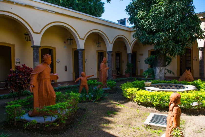 On our first morning we walked most of the Tlaquepaque neighborhood, scoping out galleries and trying to get into the historical sites.  We visited the Centro Cultural El Refugio, a former free public hospital funded by wealthy citizens in the 1800s until the last century – there are still people in the neighborhood who were born there. In recent past it has gone through cycles of disrepair, but now has been partially restored and turned into a cultural center and museum.  Most of it was closed for refurbishment and repairs from a hail storm a year ago, but when we stayed to look at the small open area, the museum staff decided to give us a personal tour of some of the closed wings.