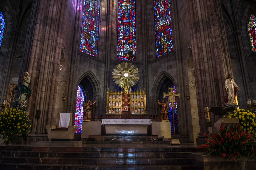 The Templo Expiatorio del Santísimo Sacramento. On the hour the 12 apostles come out of the clock tower and parade around.