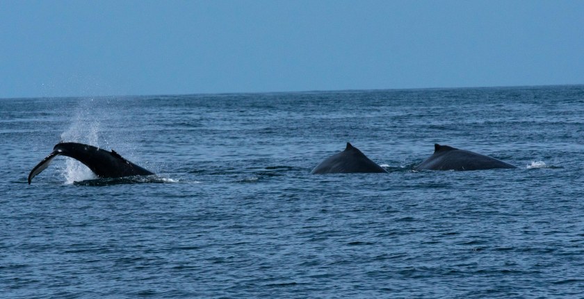 After a couple of pleasant hours enjoying the scene, we returned to Miss Miranda and started back to La Cruz. The highlight of our return trip was a breaching, dancing, playing whale that was right in front of us, seemingly unwilling to let us pass without putting on a show. Gwen got some outstanding pictures. We also saw a school of rays swimming just under the surface, but they swam off before we could get photos.