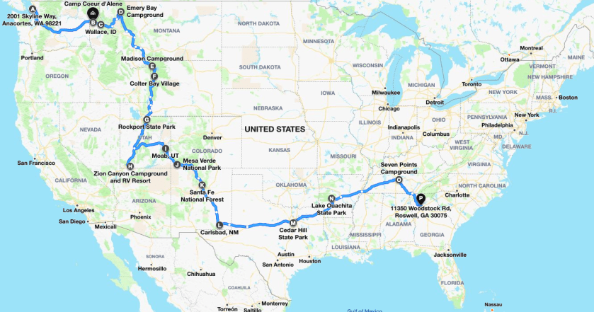 We did some internet searching to find a route that included some of our bucket list national parks, which looks something like this: