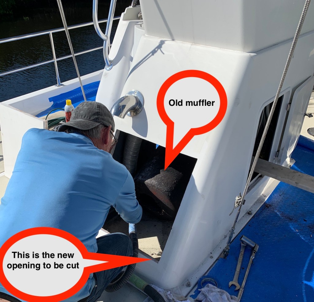 A major project that we have decided to take on is replacing the dry stack muffler, which we were told back in 2019 was a rusted hulk in desparate need of replacement. We didn’t have time to get the work done before heading to Mexico, so we took a chance on it. Lately, we’ve heard too many stories on the Nordhavn Owners Group about mufflers disintegrating underway, so it is time to get the job done. The problem is that there is no way to remove the muffler without cutting away a significant amount of fiberglass to gain access. Evidently, the idea of “design for serviceability” was not a thing when Miss Miranda was built. The good news is that 1) Many other N50 owners have taken on the job, and I even have a pictures of the recent work from on N50 sister ship Les Voguer (thanks, James!) 2) The muffler is still available from the manufacturer along with all of the other parts needed, including the insulation blanket. Now I just need to find someone in La Paz competent to do the work, and I have a couple of good leads so far.