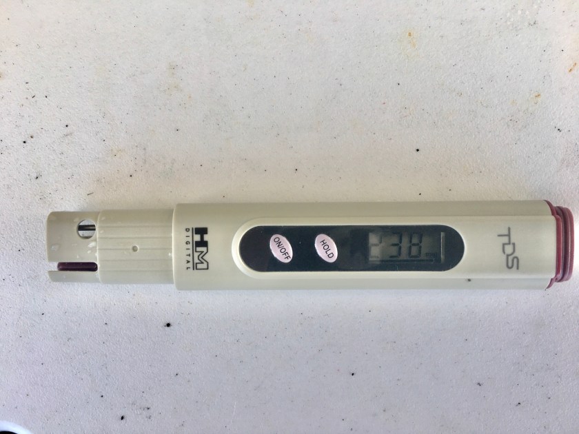 After about 30 minutes of installation and flushing with fresh water, we were ready to test the watermaker. After just a few minutes of run time, it was producing product water at 238 PPM, which is just fine.