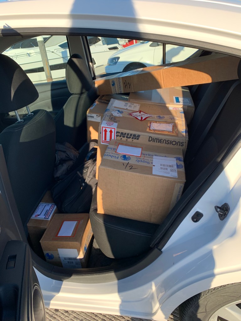 We then picked up our rental car, and finally removed our safety gear with relief. 25 minutes later we were at Marina Puerto Los Cabos, where we stayed last year, and picked up our mountain of parts that our friends Kevin and Alison so graciously schlepped for us.