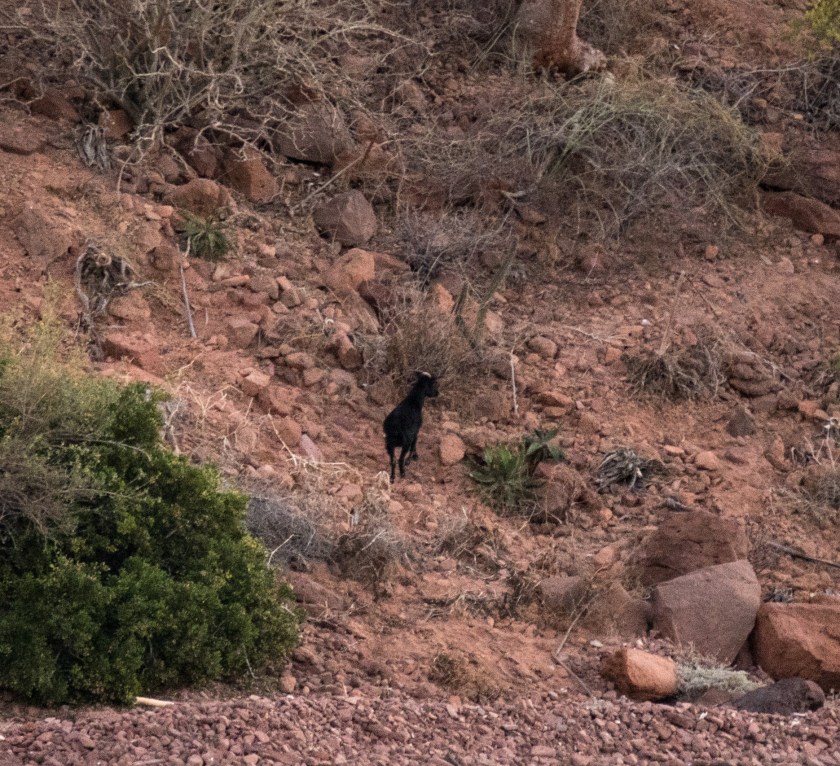 I asked the ranger whether there were animals on shore, trying to describe what I had heard in my broken Spanish. He said there are goats on the islands, non-native pests that need to be removed as they are eating all the vegetation. Just like in Olympic National Park in the US. And sure enough, at cocktail hour we saw a family of goats on shore. And later, we saw and heard the annoying baby goat who had lagged behind as the adults walked down the shore, crying for them to wait for him. He looked quite healthy, which explained the lack of vultures.