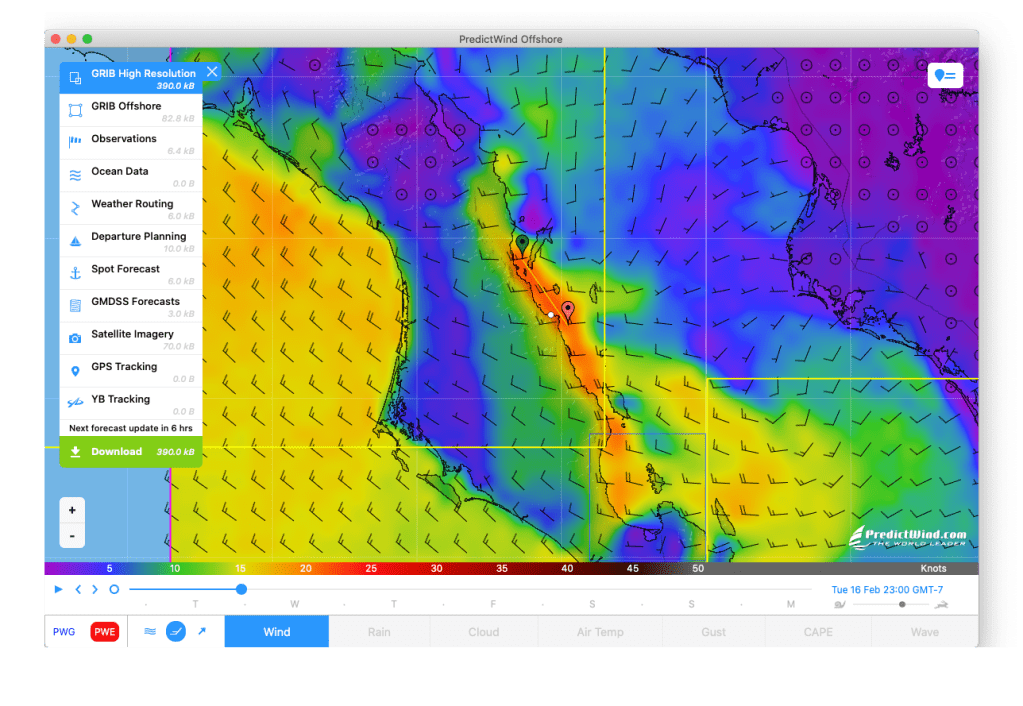 So, I downloaded one of the higher resolution wind forecasts from PredictWind and saw that it did, in fact, predict these localized westerly winds. The model showed the wind we experienced in the morning, and predicted an overnight Westerly in San Evaristo that night. And sure enough, we experienced several hours of 25 knot winds overnight. It was noisy, but since we were protected from the west, we had no waves/swell, and therefore, not a problem. Now we know that it is worth downloading these higher resolution wind forecasts, even though they take about an hour to get at the snail’s pace of the Iridium GO!.