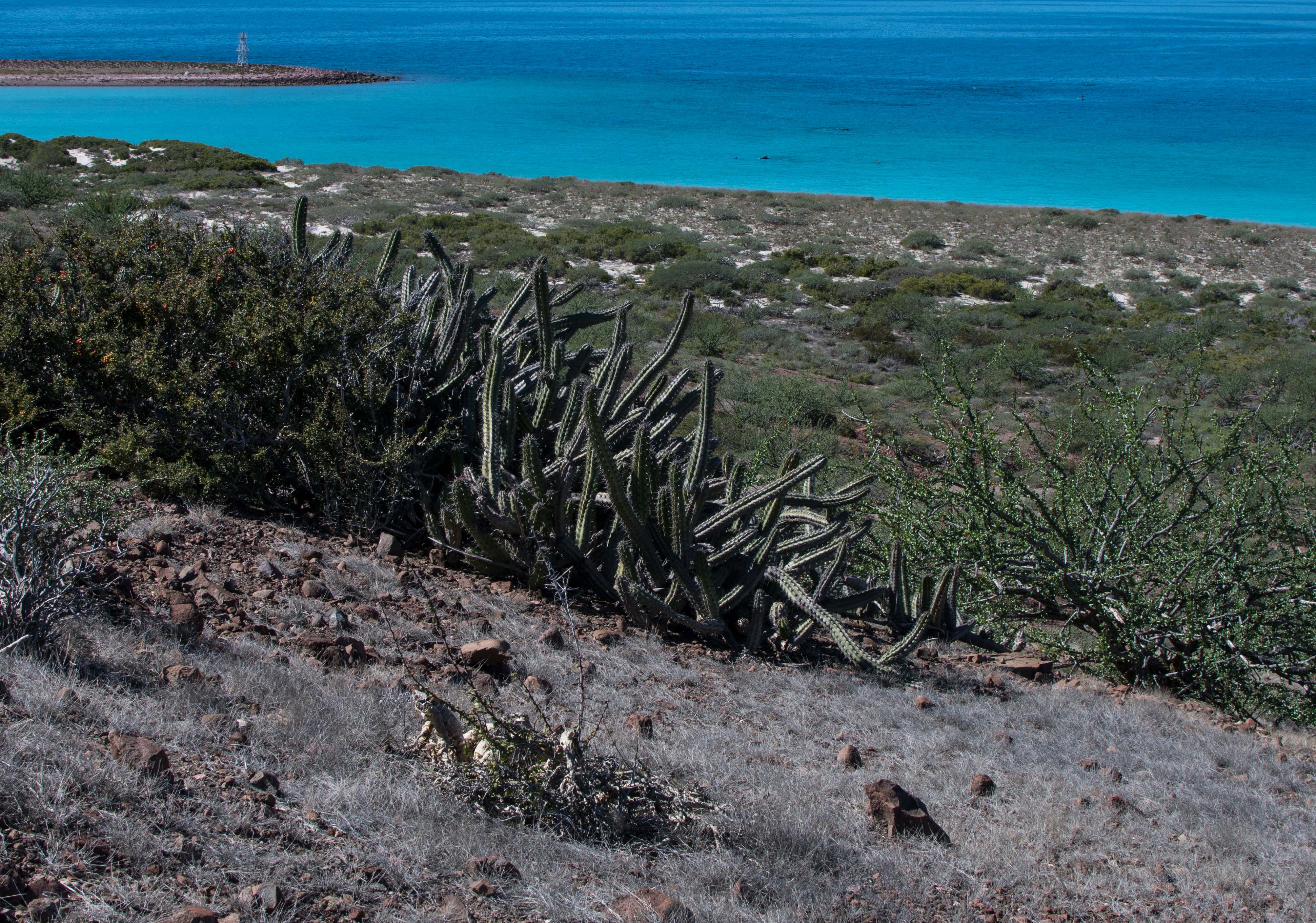 This island has several options for walks, so we took the opportunity to stretch our legs every day. We went ashore and hiked up the ridge on the S side of the anchorage where we could look down over the whole scene. We didn’t stay long because the tide was going out and the dingy was gradually being left high and dry. If the water receded completely, we’d wind up having to wait for the rising tide to get back to the boat. This kind of thing happens all the time in the PNW, where the tidal range is quite large. It’s not as big down here, but enough to cause problems. We have routinely used an “anchor buddy” which is an elastic line that attaches to the dingy on one end and a small mushroom anchor on the other end. You throw it over when you get close to shore, plant the bow anchor on the beach, and then let out a bit of line. The anchor buddy pulls the dingy back into the water where it stays afloat in place. Unfortunately, last year we lost the mushroom anchor trying to anchor in a snorkeling spot that had way too much swell. So when we narrowly avoided having to spend hours on the beach, Larry fashioned a makeshift replacement from one of the small volcanic rocks on the beach. The anchor buddy is back in business, but Larry will need to improve the lashings for the rock.