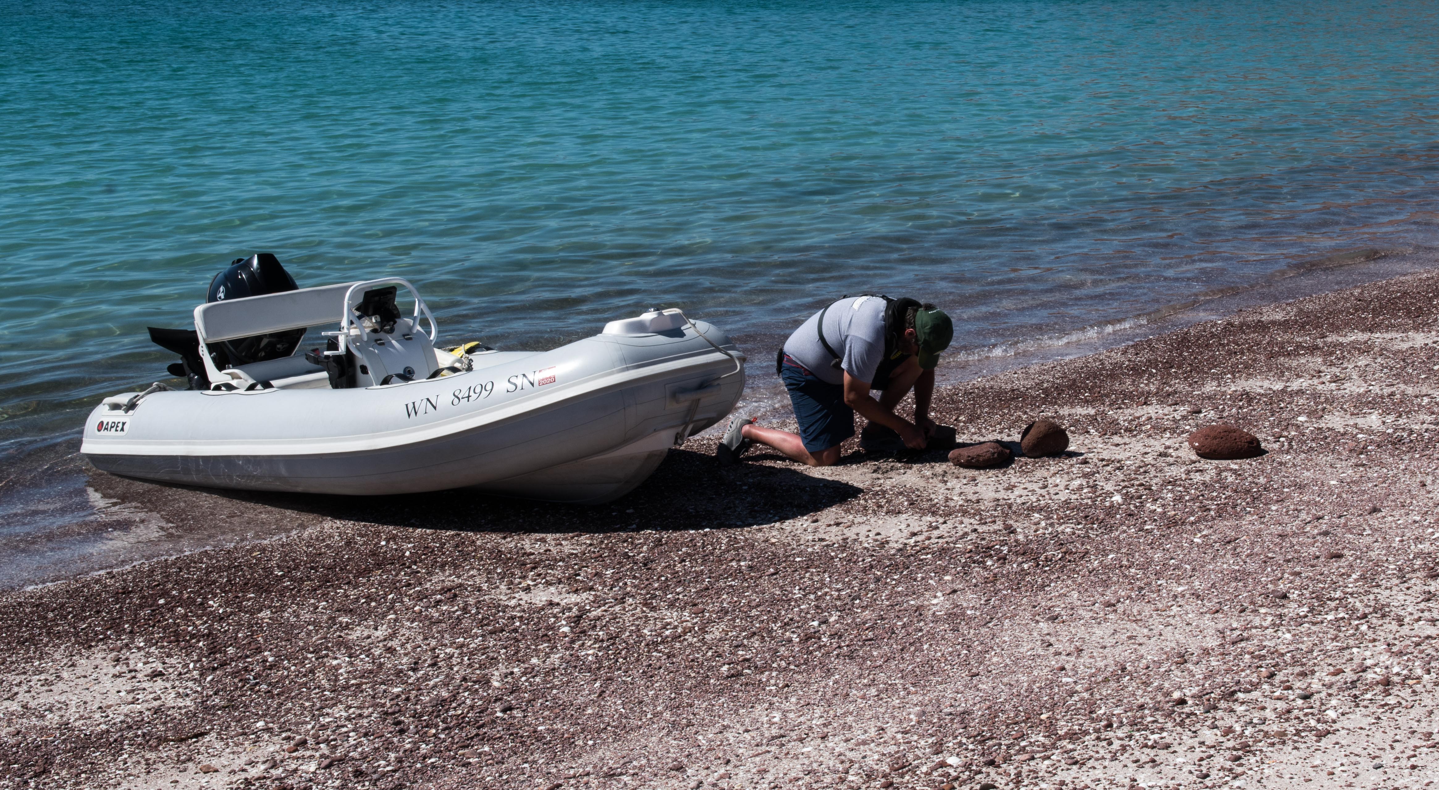 We checked out the rocky points on either end of the bay which are supposed to be good snorkeling areas. They appear to have shallow depths of less than 12 feet, so we will likely try these out when we return later in the spring when everything has warmed up. Near shore, there was not a lot of activity in the crystal clear water. I found it notable that on one dingy landing, there was a large black boxfish near shore but no other fish, which is why he caught my eye. There aren’t any urchins or anemones, but there are clearly crabs living there, we just haven’t seen then.
