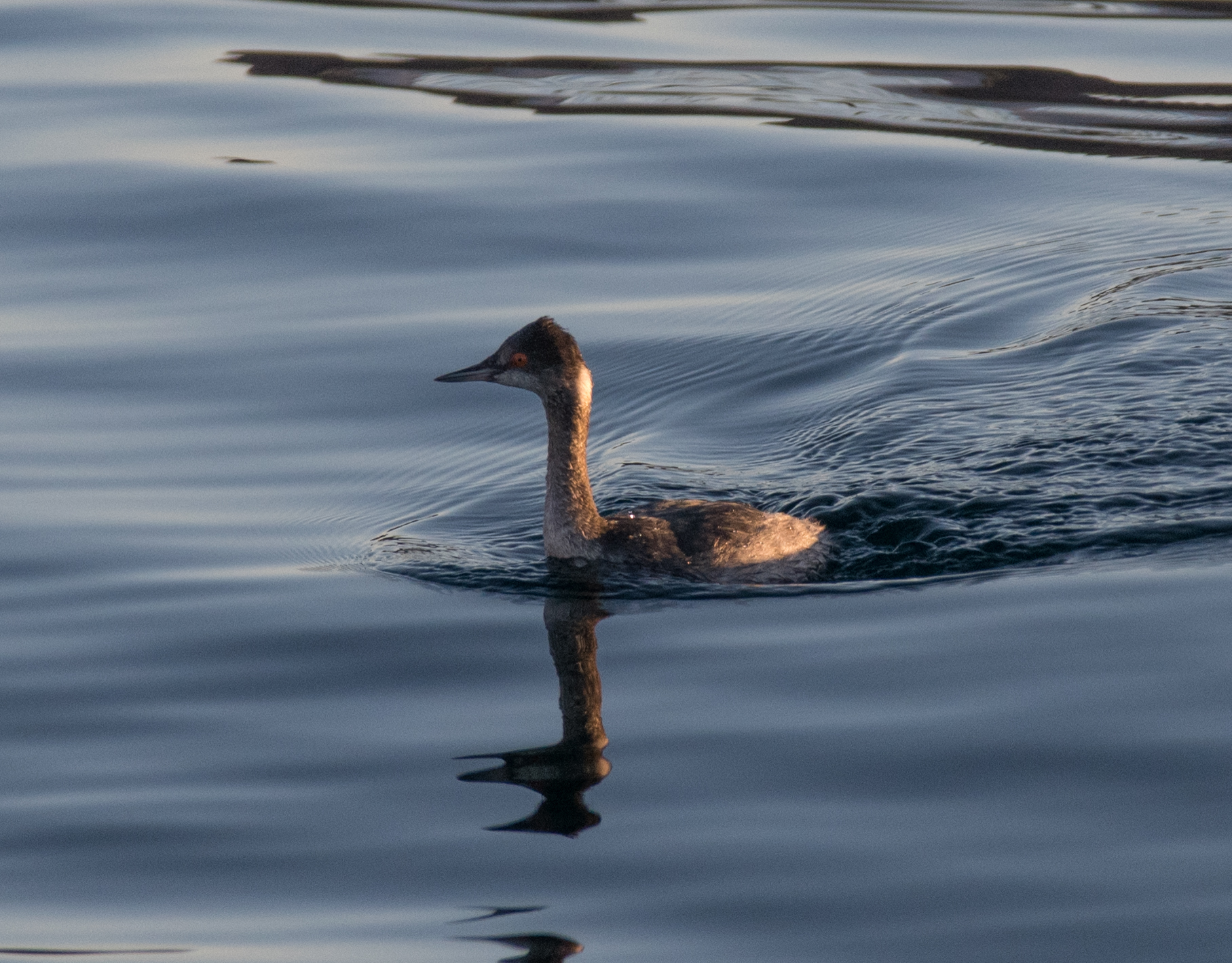 The mystery bird from one of my earlier posts reappeared in this anchorage. I caught them on film as they swam around during the dolphin visit. It’s a bit challenging as they don’t stay on the surface for long at all, they pop up and then quickly dive again in rapid succession. I am fairly confident that they are lesser grebes. They look delicate from a distance and curve their bodies and extend their necks as they dive, but they look much more substantial in up close photos.