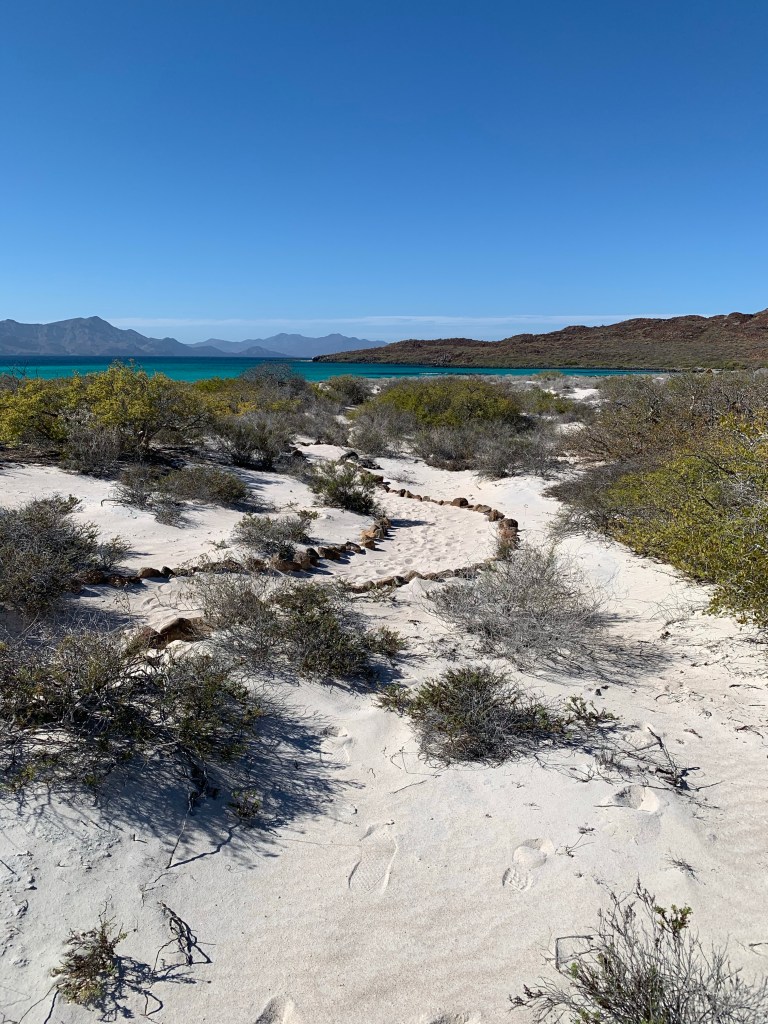 Because this area is so close to Loreto, it has clearly been quite picked over for shells. The few we found on the beach were quite aged, along with a fair amount of dead coral. There are some good shallow rocky areas that are supposed to be good for snorkeling – perhaps we will try them on our way back down in a month or two. We didn’t walk deeper into the island – there are big horn sheep and an active hunting lodge nearby, and a very marshy swampy area between the beach and the hills.