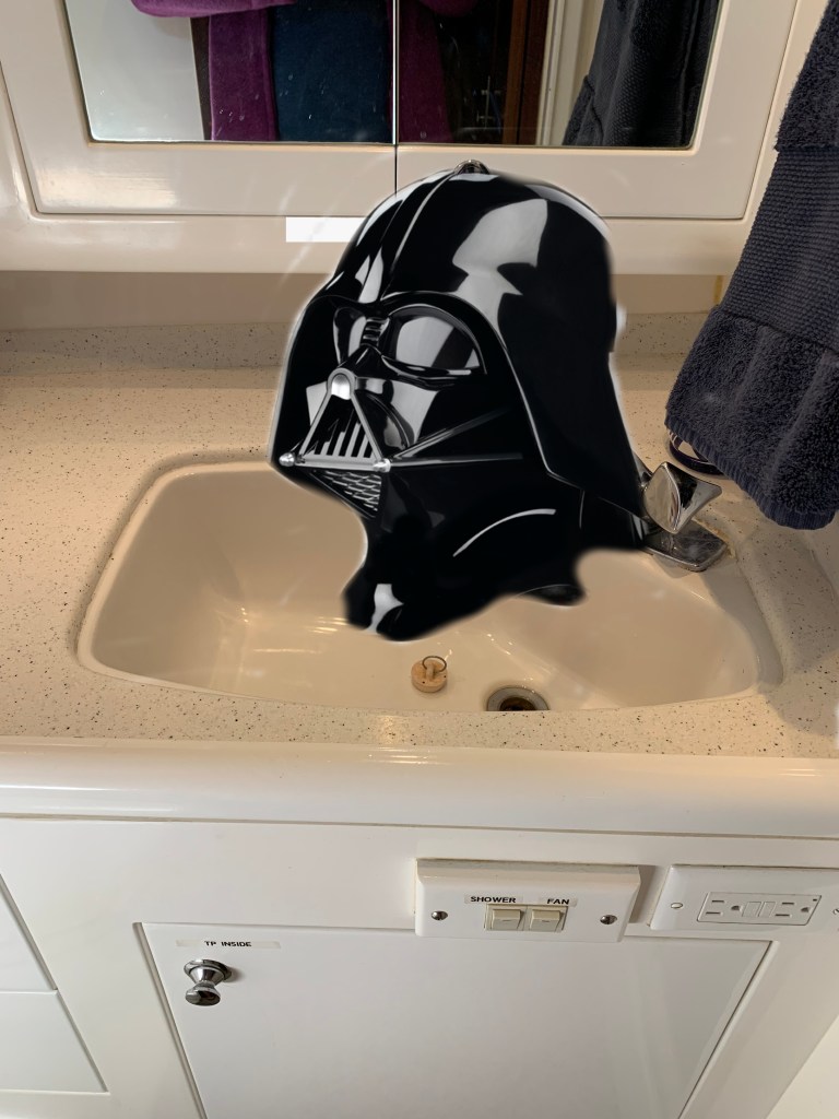 The Darth Vader breath, as it turns out, comes from the sink drain in the head (nautical for bathroom). There is a hose from the drain that goes to a thru hull to drain overboard, right near or even below the water line. When it is rocking in the anchorage, the bow of the boat pitches up and down and air gets sucked down the drain and then pumped back out, making a very distinct wheezing sound. We have plugs that we put in the drain that prevents Darth from breathing, but if it is really rolly, they pop right out. Our friend Ron from Duet asks incredulously “why don’t you just close the through hull valve?”. Of course we could do that, but then we fill the sink when we wash our hands and have the potential for sloshing water around. So it’s usually jam in the drain plug and close the door.