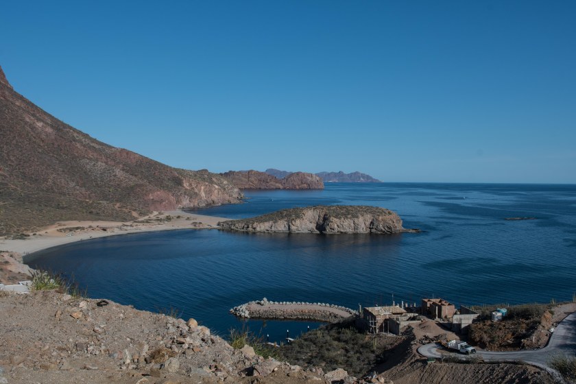 The construction going on at the south end of Bahia Algodones is astonishing. The other marina (Marina Real) is completely surrounded by houses/condos, and the road up to the scenic viewpoint is full of construction on both sides, all apparently speculative based on big “Se Vende” sale signs in front of them. The hills around Caleta Lalo have been carved and flattened for homesites, and there was a private breakwater and pilings in the NW corner. You’d think the entire US is moving to San Carlos. Anyway, we enjoyed exploring the area in the rental car, and shockingly enough, we actually experienced a (single) calm day in the marina.