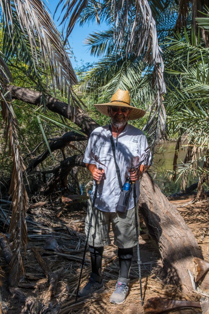 Our mission this time was to hike on the trail from the north beach over the hill, past the village cemetery and on to the beach on the other side. The trail was a typical human/goat trail, a mix of compacted dirt and lots of loose rocks. Some other boaters were investigating the cemetery so we went onward toward the beach. Soon we found ourselves at the head of an estuary, surrounded by palm trees and looking into a brackish water pool. It was low tide, so we could cross the stream. Once we did, we could see the estuary opening to the beach, several hundred yards away. We tried bushwacking along some goat trails that ran next to the estuary, but weren’t able to get there, so we gave up and headed back.
