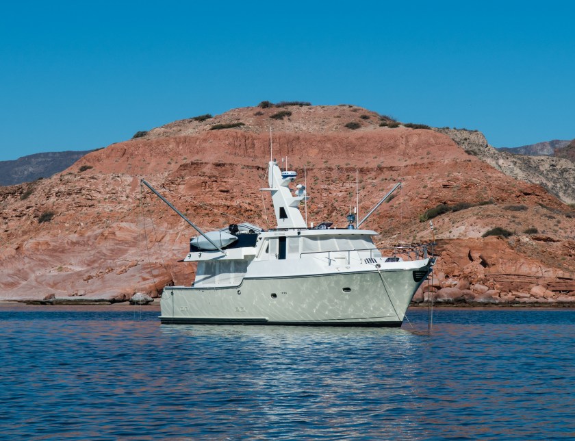 The anchorage is completely exposed to the east and as the southerly winds picked up in the afternoon, swell wrapped around the small point on the South end. As usual, we had the flopper stopper deployed, but wound up deploying the other one for the first time this season. That flattened things out nicely. Later in the afternoon a few sailboats arrived, and the beach camp took shape, with nearly a dozen dome tents, a cook tent, a sun shelter, and what looked like a “pee pee tee pee”. Soon afterwards, a group of kayaks pulled in, led by another panga.