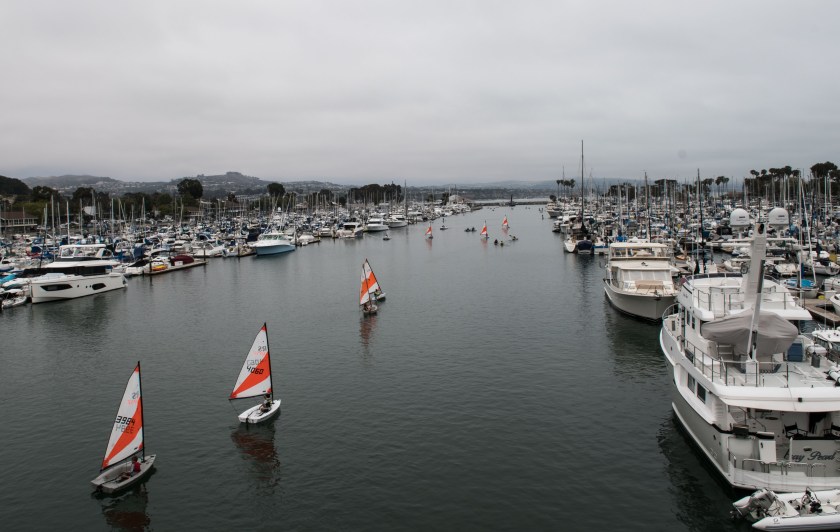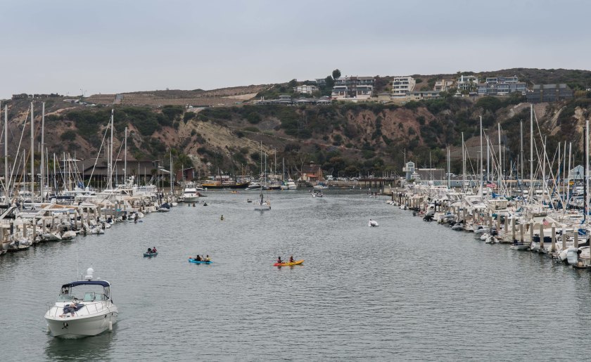 The harbor itself is completely man made, with long breakwaters that destroyed the famous Killer Dana surf break when they were constructed in the 1960s. The marinas are jam packed on both sides of the fairway, and clearly this is a popular spot for all kinds of water activity.