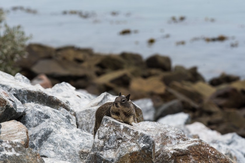 They have some nice walking paths around the harbor, which is bisected by a bridge. On the jetty side, I was quite surprised to see dozens of little critters running around that looked like a cross between squirrels (which we hadn’t seen since Anacortes) and prairie dogs, with the way they sit up on their hind legs and pop out of holes. Turns out these are ground squirrels.