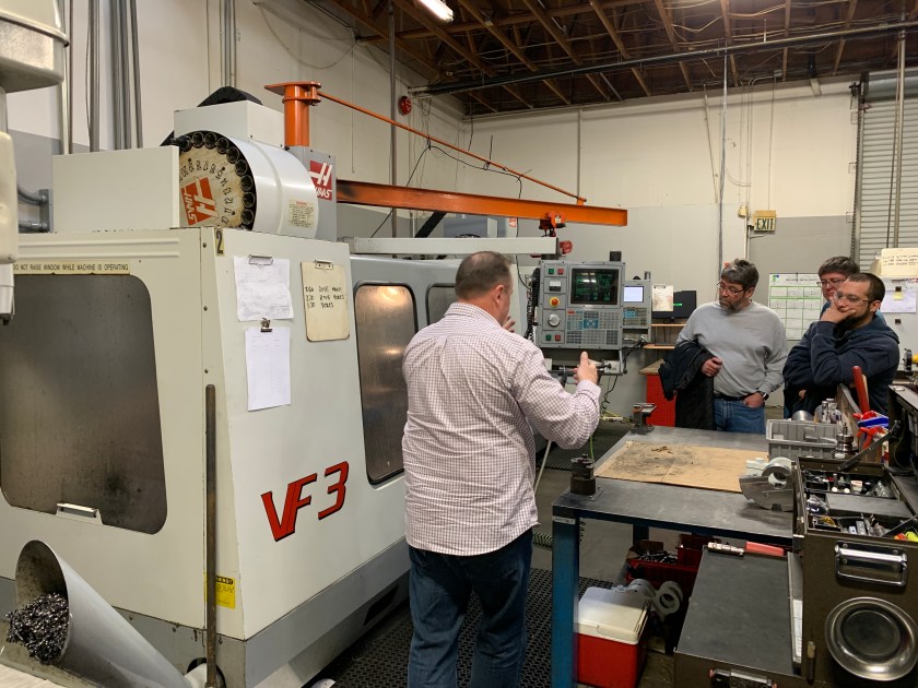 The machine shop and one of the machines that builds the parts.