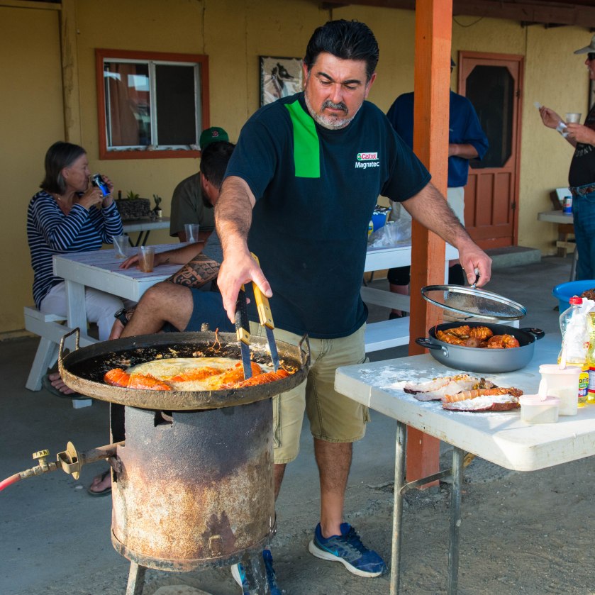 We crammed into their van for a 45 minute trip on the dusty gravel road to Punta Eugenia to visit the Lobster Cooperative where lobsters are received from the fisherman. The Cooperative has 35 teams of 2, and the holding facility prepares them to be shipped live to US and then to China. The facility looks out on massive kelp beds, and also houses an Abalone Nursery where they are breeding abalone and working to repopulate the bay with juvenile abalone.